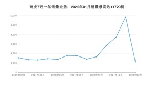 2022年2月,瑞虎7销量为2162辆,同比下降29.87%,环比下降81.55%。2021年02月-2022年02月份,瑞虎7销量为54182辆,同比增长32.48%。