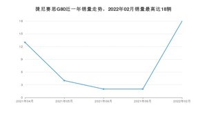 2022年2月,捷尼赛思G80销量为18辆,2021年02月-2022年02月份,捷尼赛思G80销量为39辆,