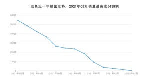 2022年2月,远景销量为19辆,同比下降99.65%,环比下降86.99%。2021年02月-2022年02月份,远景销量为29210辆,同比下降64.29%。