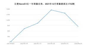 2022年2月,五菱NanoEV销量为841辆,环比下降46.74%。2021年02月-2022年02月份,五菱NanoEV销量为5952辆,