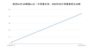 2022年2月,瑞虎8 PLUS鲲鹏e+销量为44辆,环比增长2%。2021年02月-2022年02月份,瑞虎8 PLUS鲲鹏e+销量为46辆,