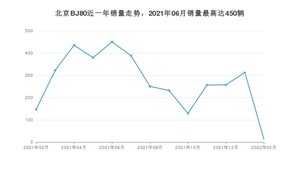 2022年2月,北京BJ80销量为14辆,同比下降90.48%,环比下降95.53%。2021年02月-2022年02月份,北京BJ80销量为3572辆,同比增长6.88%。