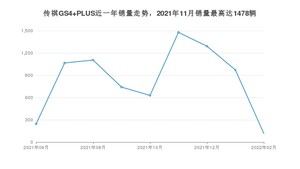 2022年2月,传祺GS4 PLUS销量为116辆,环比下降88.07%。2021年02月-2022年02月份,传祺GS4 PLUS销量为7645辆,
