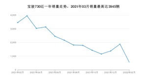 2022年2月,宝骏730销量为548辆,同比下降84.14%,环比下降70.84%。2021年02月-2022年02月份,宝骏730销量为28172辆,同比下降46.57%。