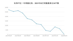 2022年2月,哈弗F7销量为16辆,同比下降99.71%,环比下降98.75%。2021年02月-2022年02月份,哈弗F7销量为36574辆,同比下降64.72%。