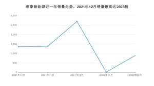 2022年2月,帝豪新能源销量为893辆,环比增长8%。2021年02月-2022年02月份,帝豪新能源销量为6336辆,