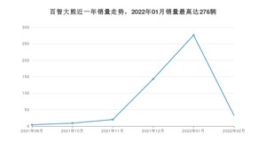 2022年2月,百智大熊销量为33辆,环比下降88.04%。2021年02月-2022年02月份,百智大熊销量为485辆,