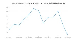 2022年2月,东风本田M-NV销量为19辆,同比下降88.55%,环比下降93.33%。2021年02月-2022年02月份,东风本田M-NV销量为5162辆,同比增长1%。