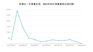 2022年2月,悦翔销量为19辆,同比下降94.38%,环比下降89.95%。2021年02月-2022年02月份,悦翔销量为7349辆,同比下降67.5%。