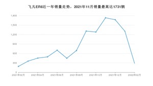 2022年2月,飞凡ER6销量为284辆,同比增长50.26%,环比下降78.24%。2021年02月-2022年02月份,飞凡ER6销量为10911辆,同比增长261.17%。