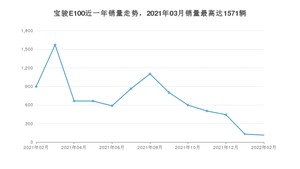2022年2月,宝骏E100销量为113辆,同比下降87.43%,环比下降12.4%。2021年02月-2022年02月份,宝骏E100销量为8939辆,同比下降64.47%。