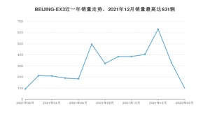 2022年2月,BEIJING-EX3销量为99辆,同比增长6.45%,环比下降69.91%。2021年02月-2022年02月份,BEIJING-EX3销量为3935辆,同比增长22.74%。