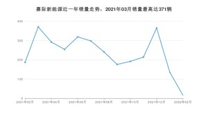 2022年2月,嘉际新能源销量为16辆,同比下降91.44%,环比下降88.24%。2021年02月-2022年02月份,嘉际新能源销量为3061辆,同比增长171.12%。