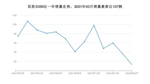 2022年2月,驭胜S350销量为13辆,同比下降82.67%,环比下降64.86%。2021年02月-2022年02月份,驭胜S350销量为864辆,同比增长319.42%。