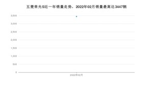 2022年2月,五菱荣光S销量为3447辆,2021年02月-2022年02月份,五菱荣光S销量为3447辆,