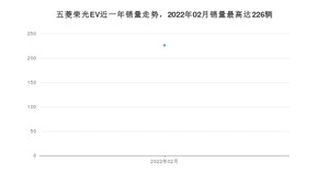 2022年2月,五菱荣光EV销量为226辆,2021年02月-2022年02月份,五菱荣光EV销量为226辆,