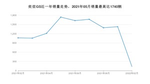 2022年2月,奕炫GS销量为132辆,同比下降87.62%,2021年02月-2022年02月份,奕炫GS销量为11326辆,同比下降4.23%。
