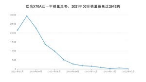 2022年2月,欧尚X70A销量为31辆,同比下降98.56%,环比下降42.59%。2021年02月-2022年02月份,欧尚X70A销量为11030辆,同比下降66.55%。