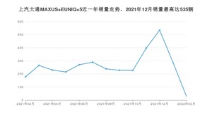 2022年2月,上汽大通MAXUS EUNIQ 5销量为29辆,同比下降83.71%,环比下降89.9%。2021年02月-2022年02月份,上汽大通MAXUS EUNIQ 5销量为3390辆,同比增长121.57%。