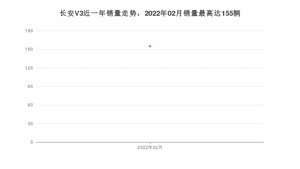 2022年2月,长安V3销量为155辆,2021年02月-2022年02月份,长安V3销量为155辆,