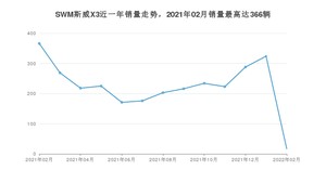 2022年2月,SWM斯威X3销量为17辆,同比下降95.36%,环比下降94.75%。2021年02月-2022年02月份,SWM斯威X3销量为2930辆,同比下降33.76%。