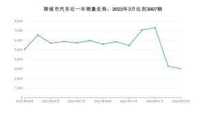 2022年3月,聊城市汽车总销量为3007辆,同比下降40.64%,环比下降8.43%。2021年03月-2022年03月份,聊城市总销量为72375辆,同比下降3.3%。在最近1年中,聊城市销量在2022年01月达到最高,销量为7306辆。