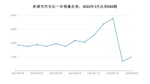 2022年3月,孝感市汽车总销量为982辆,同比下降47.06%,环比增长43.99%。2021年03月-2022年03月份,孝感市总销量为26546辆,同比增长0.48%。在最近1年中,孝感市销量在2022年01月达到最高,销量为3772辆。