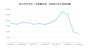 2022年3月,泉州市汽车总销量为4934辆,同比下降54.13%,环比下降14.78%。2021年03月-2022年03月份,泉州市总销量为138289辆,同比下降2.84%。在最近1年中,泉州市销量在2021年12月达到最高,销量为16519辆。