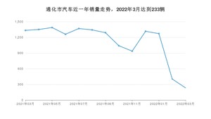 2022年3月,通化市汽车总销量为233辆,同比下降82.52%,环比下降42.18%。2021年03月-2022年03月份,通化市总销量为14525辆,同比增长6.44%。在最近1年中,通化市销量在2021年05月达到最高,销量为1387辆。