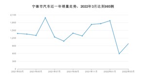 2022年3月,宁德市汽车总销量为985辆,同比下降28.52%,环比增长67.52%。2021年03月-2022年03月份,宁德市总销量为17959辆,同比增长9.07%。在最近1年中,宁德市销量在2021年06月达到最高,销量为1987辆。