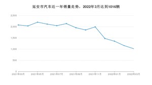 2022年3月,延安市汽车总销量为1016辆,同比下降51.04%,环比下降12.11%。2021年03月-2022年03月份,延安市总销量为23396辆,同比下降20.57%。在最近1年中,延安市销量在2021年05月达到最高,销量为2200辆。