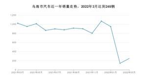 2022年3月,乌海市汽车总销量为249辆,同比下降75.59%,环比增长75.35%。2021年03月-2022年03月份,乌海市总销量为10643辆,同比下降2.55%。在最近1年中,乌海市销量在2021年12月达到最高,销量为1068辆。