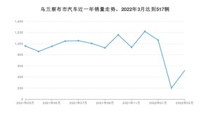 2022年3月,乌兰察布市汽车总销量为517辆,同比下降46.09%,环比增长158.5%。2021年03月-2022年03月份,乌兰察布市总销量为11895辆,同比下降4.2%。在最近1年中,乌兰察布市销量在2021年12月达到最高,销量为1221辆。