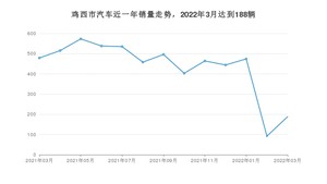2022年3月,鸡西市汽车总销量为188辆,同比下降60.75%,环比增长104.35%。2021年03月-2022年03月份,鸡西市总销量为5659辆,同比增长0.34%。在最近1年中,鸡西市销量在2021年05月达到最高,销量为573辆。