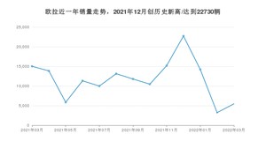 2022年3月,全国汽车总销量为1179726辆,欧拉品牌的销量占比为0.46%,在所有汽车企业销量排名中位列第39名。2021年03月-2022年03月份,全国汽车总销量为21466719辆,欧拉品牌的销量占比为0.71%,在所有汽车企业销量排名中位列第31名。