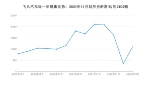 在国内市场上,飞凡汽车在2022年3月的销量为1115辆,同比增长41.14%,环比增长221.33%。2021年03月-2022年03月份,飞凡汽车累计销量为16649辆,较去年同期增长329.65%。