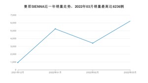 2022年3月,赛那SIENNA销量为6236辆,环比增长82.82%。2021年03月-2022年03月份,赛那SIENNA销量为15816辆,