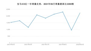 2022年3月,宝马iX3销量为2237辆,同比增长46.59%,环比增长135.23%。2021年03月-2022年03月份,宝马iX3销量为15879辆,同比增长445.67%。