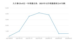 2022年3月,凡尔赛C5 X销量为610辆,环比增长2.87%。2021年03月-2022年03月份,凡尔赛C5 X销量为13953辆,