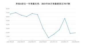 2022年3月,奔驰A级销量为1935辆,同比下降70.97%,环比增长11.66%。2021年03月-2022年03月份,奔驰A级销量为56497辆,同比下降28.64%。