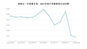 2022年3月,缤瑞销量为737辆,同比下降84.27%,环比下降29.13%。2021年03月-2022年03月份,缤瑞销量为52038辆,同比下降29.94%。