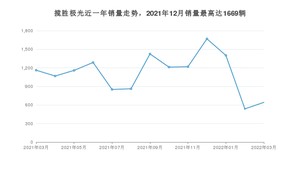 2022年3月,揽胜极光销量为642辆,同比下降44.75%,环比增长19.33%。2021年03月-2022年03月份,揽胜极光销量为14494辆,同比增长3.49%。