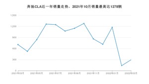 2022年3月,奔驰CLA销量为294辆,同比下降58.36%,环比增长119.4%。2021年03月-2022年03月份,奔驰CLA销量为11251辆,同比增长42.76%。