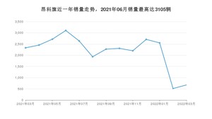 2022年3月,昂科旗销量为676辆,同比下降71%,环比增长31.26%。2021年03月-2022年03月份,昂科旗销量为28405辆,同比增长9.91%。
