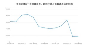 2022年3月,传祺GS4销量为1733辆,同比下降72.29%,环比增长2.85%。2021年03月-2022年03月份,传祺GS4销量为69058辆,同比下降47.09%。