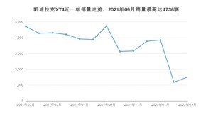 2022年3月,凯迪拉克XT4销量为1499辆,同比下降68.19%,环比增长27.14%。2021年03月-2022年03月份,凯迪拉克XT4销量为46621辆,同比下降30.67%。