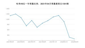 2022年3月,哈弗H9销量为82辆,同比下降94.17%,环比下降53.14%。2021年03月-2022年03月份,哈弗H9销量为13079辆,同比下降32.52%。