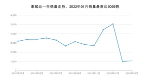 2022年3月,豪越销量为1067辆,同比下降66.54%,环比增长5.96%。2021年03月-2022年03月份,豪越销量为39768辆,同比增长15.19%。