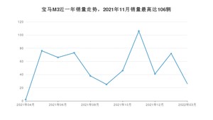 2022年3月,宝马M3销量为26辆,2021年03月-2022年03月份,宝马M3销量为571辆,同比增长11%。