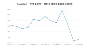 2022年3月,Levante销量为66辆,同比下降79.11%,环比增长83.33%。2021年03月-2022年03月份,Levante销量为4195辆,同比增长18.44%。